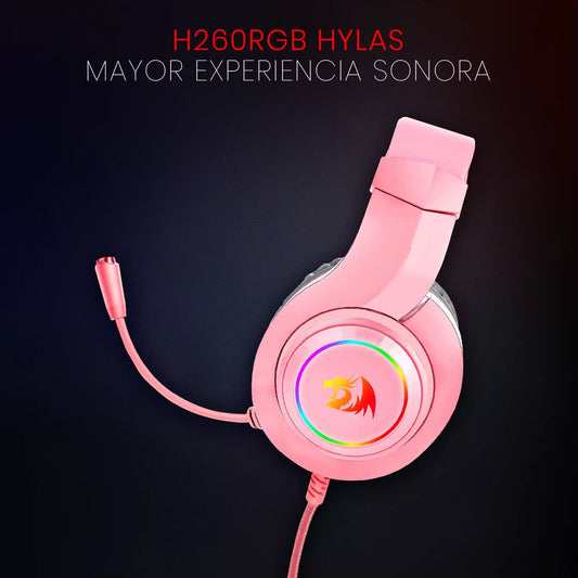 Redragon H260 Hylas RGB Pink Gaming Headset with Microphone, Circumaural Pads, Compatible with Xbox One PS4 PS5 Laptop PC, Pink