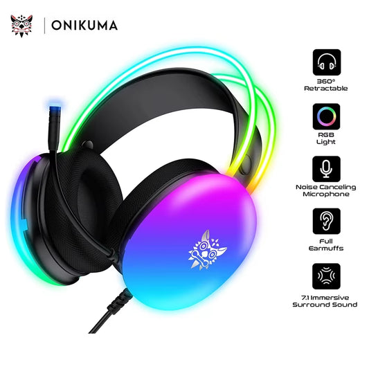 K8 Gaming Headphones with Flexible HD Mic RGB Light Surround Sound Over-Ear Wired Headset Gamer for PC Gaming Xbox